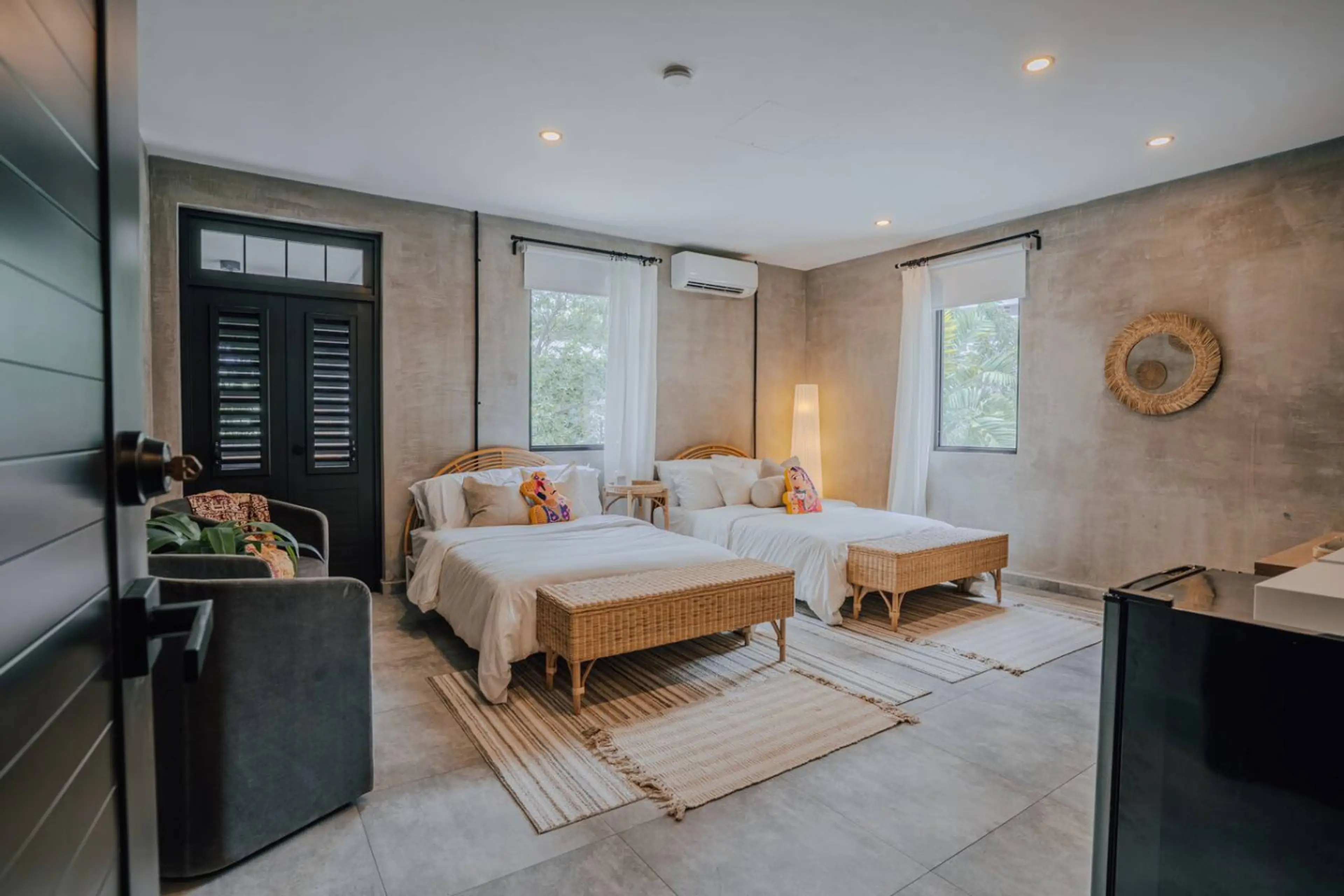 A spacious retreat designed for comfort, charm, and connection. With two full-sized beds, Flamenco is ideal for families or small groups. The room’s soothing decor creates a warm and inviting ambiance. Guests also enjoy access to the terrace, perfect for enjoying San Juan’s tropical evenings or a qu...