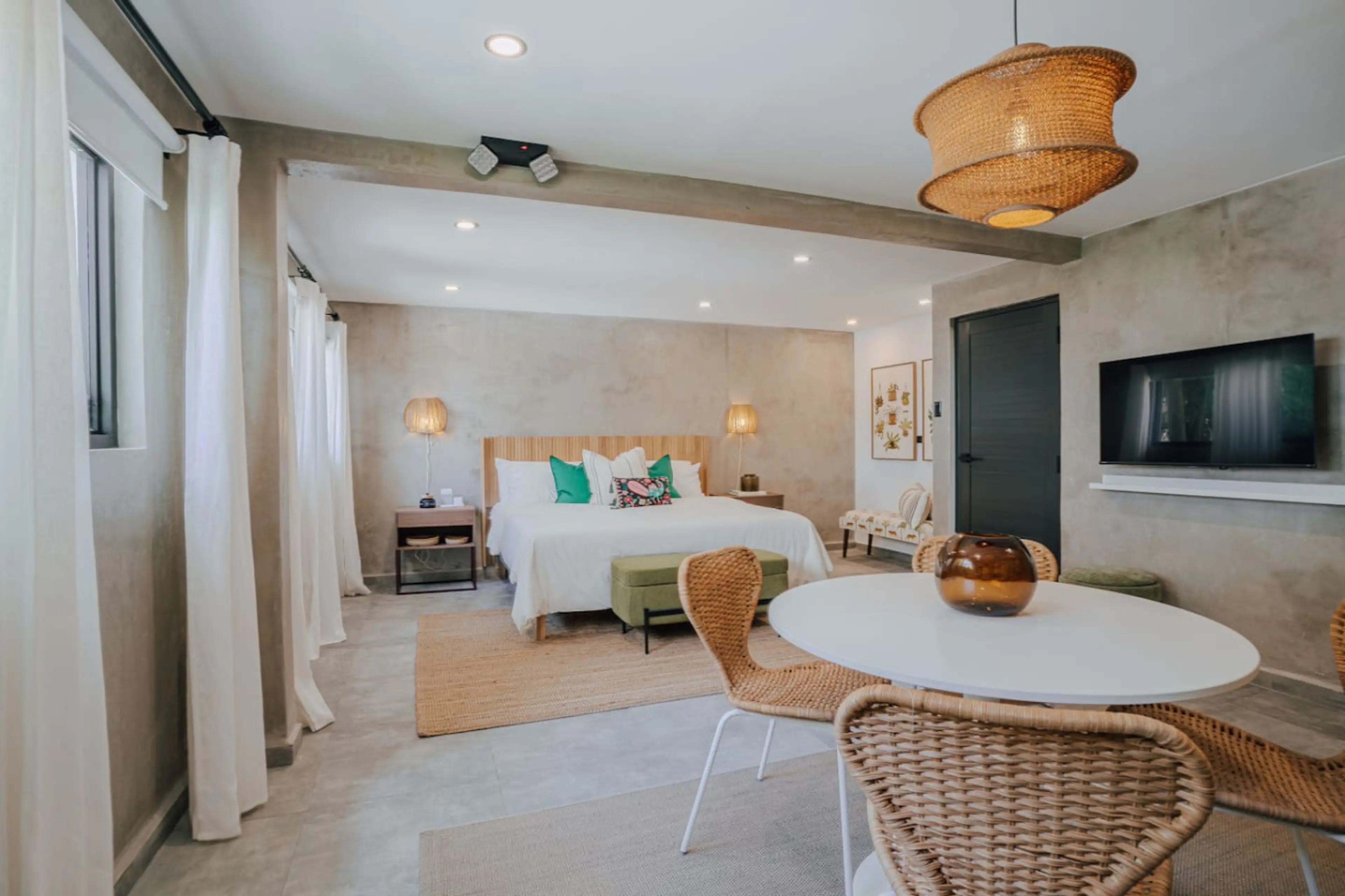 “Nirvana” offers the ultimate in peace and relaxation. With a king-sized bed, the room features beautiful decor inspired by Rajasthani culture. Enjoy a quiet retreat with access to the pool and soothing ambiance perfect for rejuvenation.